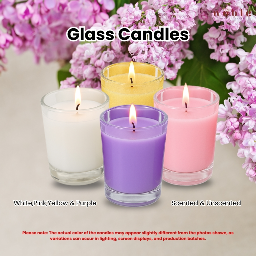 6pcs Glass Candle, unscented/scented, burning 12hours±, 2oz/60ml