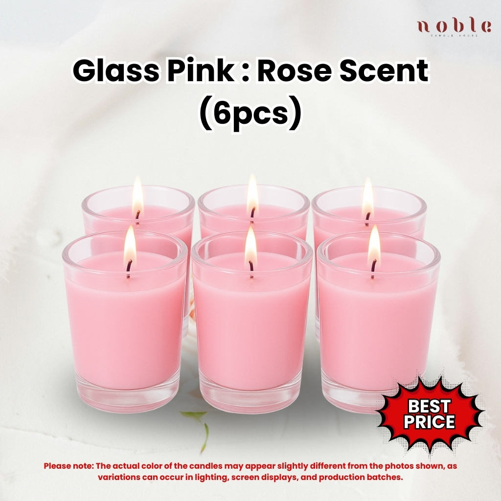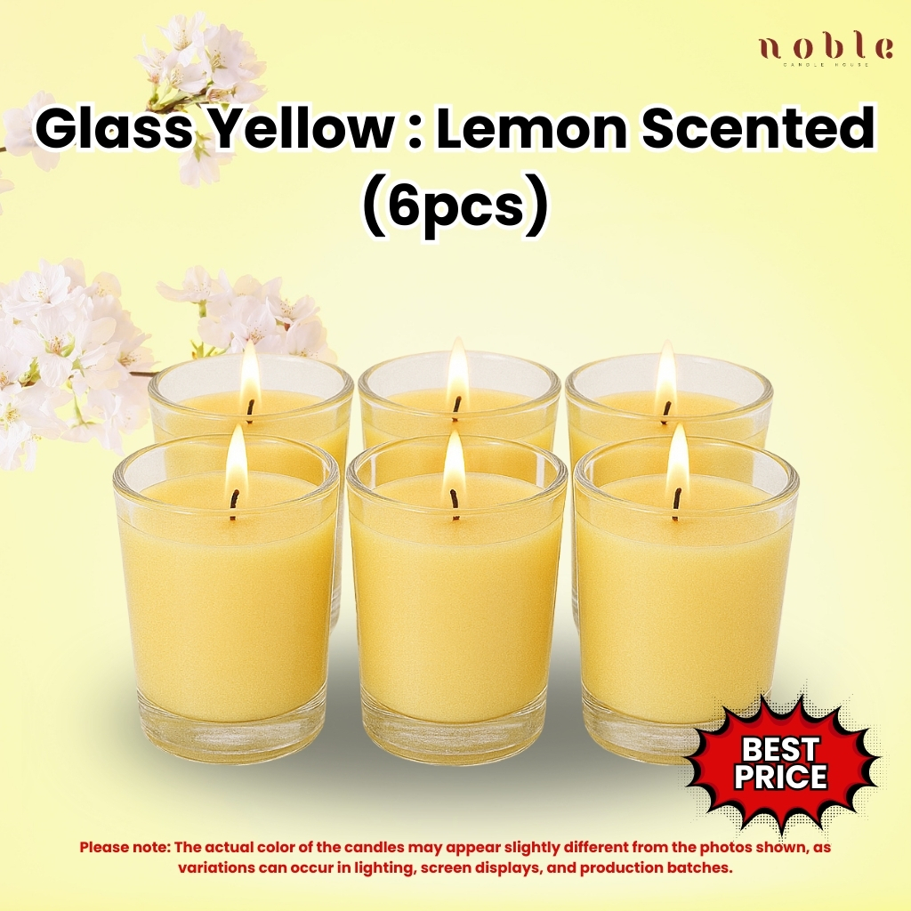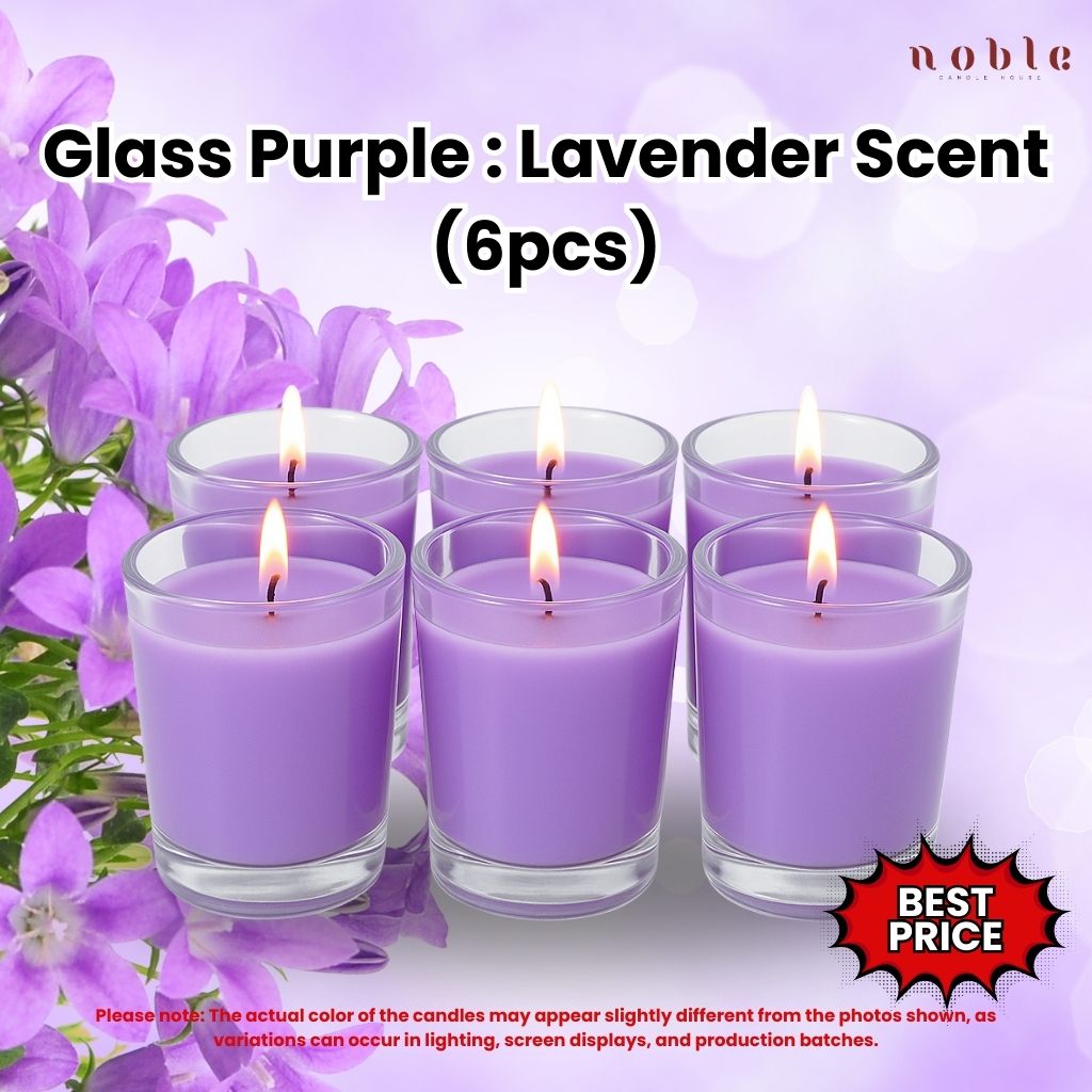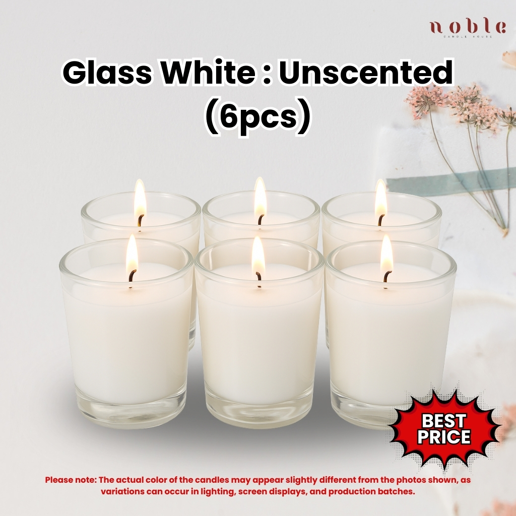 "Packing: 6 pieces of Glass Filled Candle (2oz/60ml size) * 100% hand pour Glass Filled Candle * Burning 12hours± * Made in Malaysia. * non-toxic. * Environmental friendly & Quality tested. * Glass provides extra weight and stability to the candle, hence enhance its safety. * Glass Candle Measurement: 55mm height, 45mm diameter. * Uses: festival celebration, improve ambient atmosphere, wedding, praying, function and etc * decorating your interior space. * suit for bedroom, living room, bath room, restaurant, hotel, resort, spa, wedding place, function place and etc. * Available in variants: White(unscented), White Vanilla Scent, Purple(unscented), Purple Lavender Scent, Pink(unscented), Pink Rose Scent, Yellow(unscented), Yellow Lemon Scent. ***NO CLAIM/REFUND FOR DAMAGE/DENTED BOTTLES. We strive to deliver the best service by enforcing a high-quality packaging standard (using boxes, shrink wrap, bubble wraps, etc). However, we offer NO WARRANTY for damages due to courier mishandling. Thank you for understanding. You might want to buy some extra pieces just to make sure. Please don't make a purchase if you do not agree with this term. Thank you ***TIADA TUNTUTAN/PAMPASAN UNTUK BOTOL YANG ROSAK/KEMEK. Kami berusaha sebaik mungkin untuk memberikan servis yang terbaik dengan pembungkusan yang cermat. (menggunakan kotak, shrink wrap, bubble wrap, dll). Namun kami TIDAK MEMBERIKAN GANTIAN untuk botol-botol yang rosak kerana kesilapan pengendalian pihak kurier. Terima kasih kerana memahami. Anda disarankan untuk membeli beberapa biji extra. Jangan beli jika anda tidak bersetuju dengan syarat ini. Terima kasih."