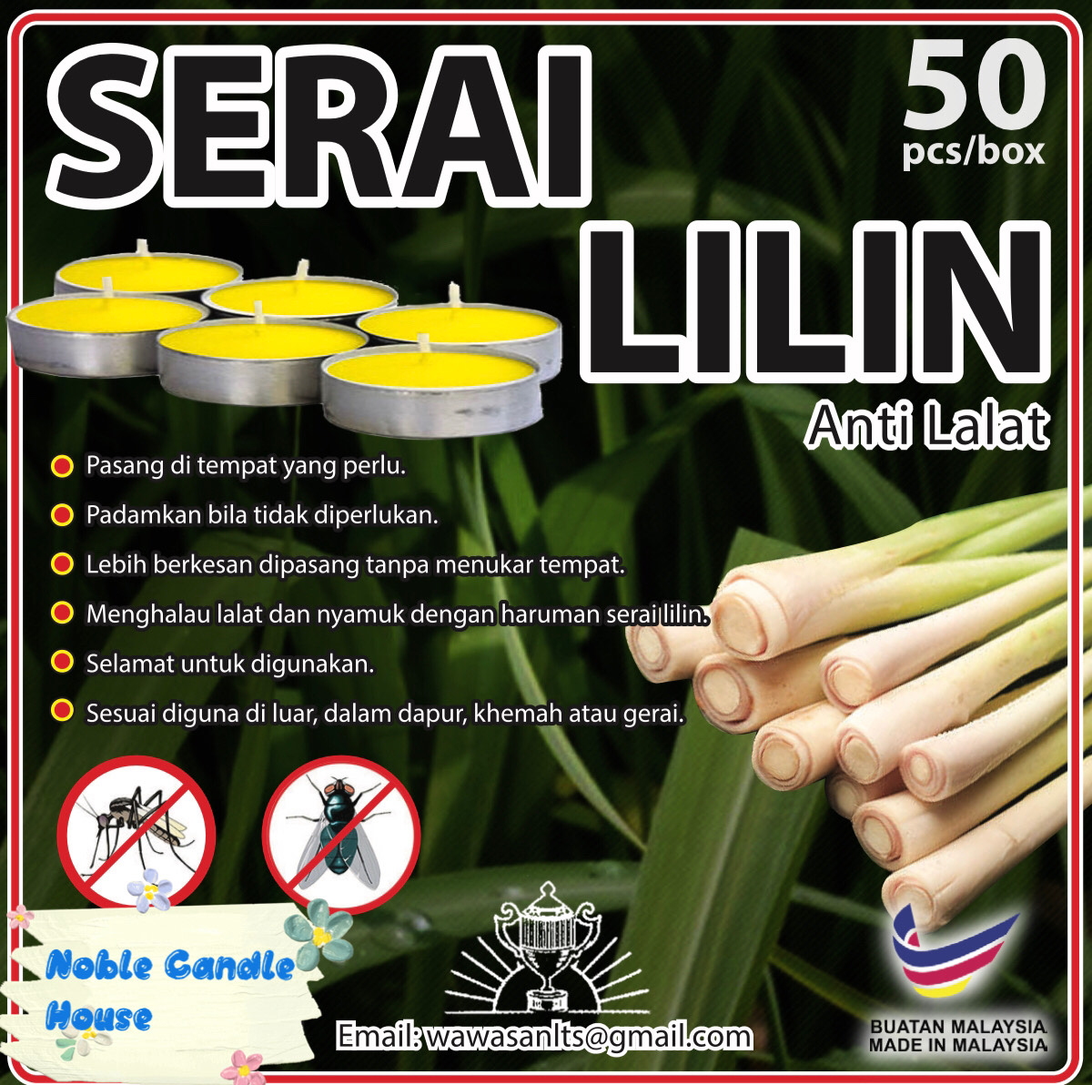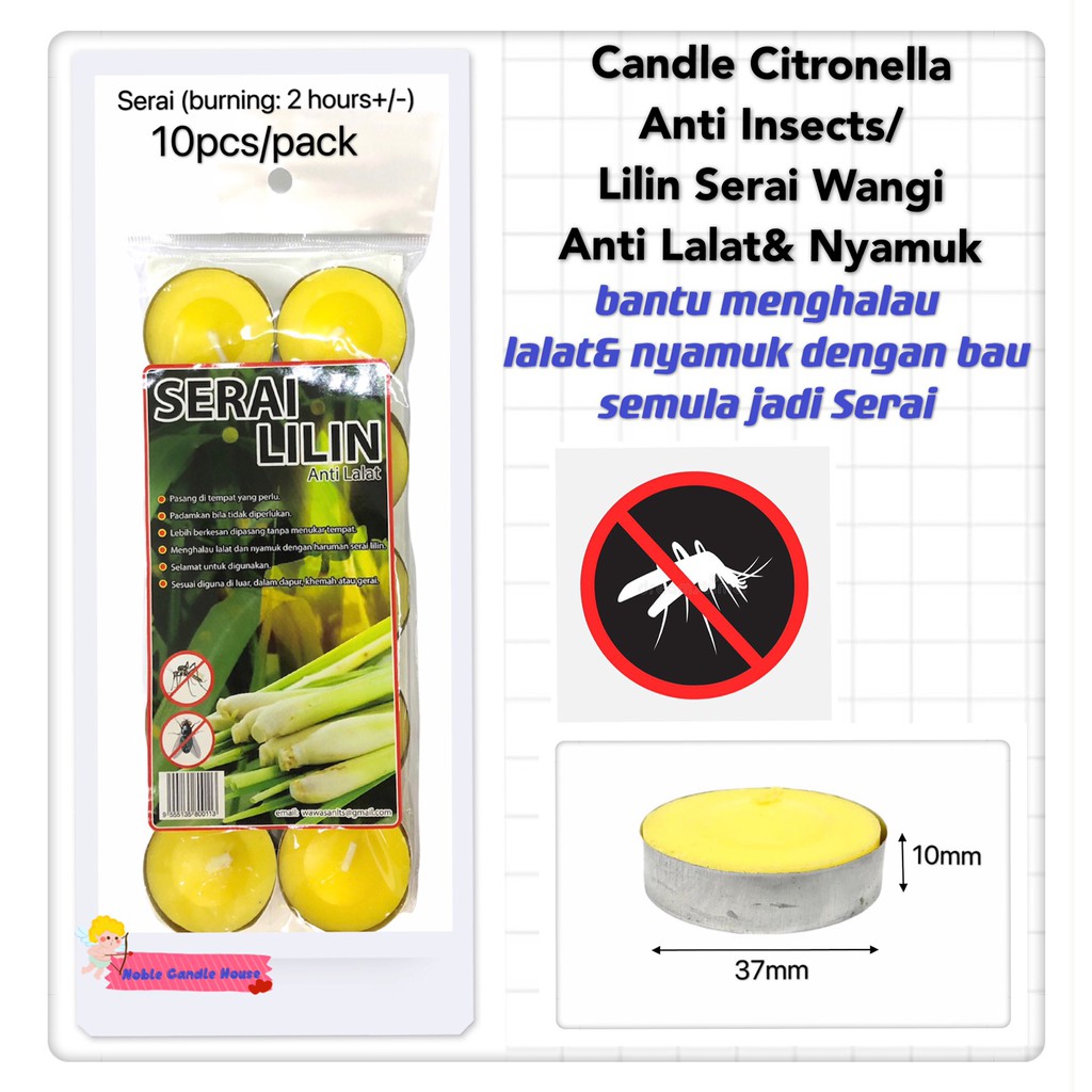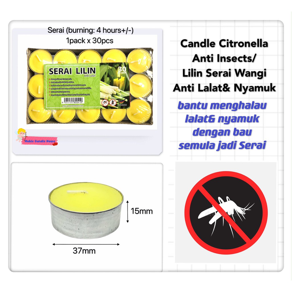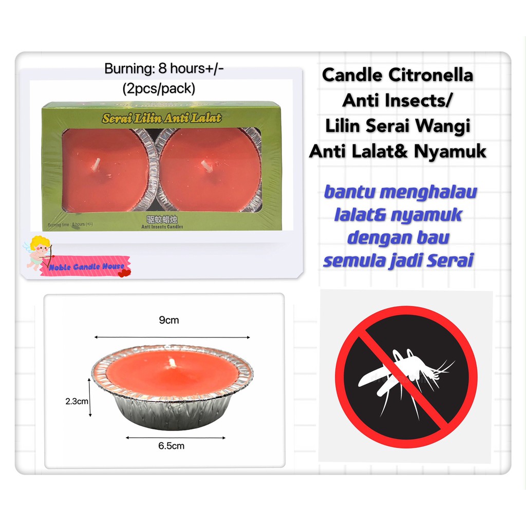"Citronella Candle (Anti-Insects ) -Made in Malaysia 🇲🇾 -Crafted with high quality essential oil citronella -Natural citronella aroma helps reduce disturbance from mosquitoes, flies & insects -Non-toxic, eco-friendly & quality tested – safe for home & family use -Burns evenly and steadily for longer-lasting use -Perfect for indoor & outdoor use – garden, balcony, camping, BBQ, or home -Creates a calming, fresh atmosphere anywhere -Trusted choice for festival celebrations, weddings, catering, functions, hotels, restaurants, and home (kitchen, bathroom, bedroom, living room, etc.) -Also great as an emergency-ready candle to keep at home -Compact & easy to store or carry – handy for travel or outdoor activities This product is not an aroma candle, so when it is lit, it does not release any fragrance."