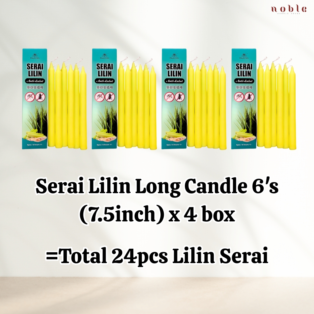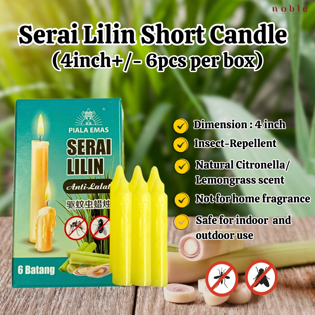 "Citronella Candle (Anti - Insects) Variants: Short (4” +/-) or Long (7.5” +/-) 1 Box = 6 pcs candles -Made in Malaysia 🇲🇾 -Crafted with high quality essential oil citronella -Natural citronella aroma helps reduce disturbance from mosquitoes, flies & insects -Non-toxic, eco-friendly & quality tested – safe for home & family use -Burns evenly and steadily for longer-lasting use -Perfect for indoor & outdoor use – garden, balcony, camping, BBQ, or home -Creates a calming, fresh atmosphere anywhere -Trusted choice for festival celebrations, weddings, catering, functions, hotels, restaurants, and home (kitchen, bathroom, bedroom, living room, etc.) -Also great as an emergency-ready candle to keep at home -Compact & easy to store or carry – handy for travel or outdoor activities This product is not an aroma candle, so when it is lit, it does not release any fragrance."